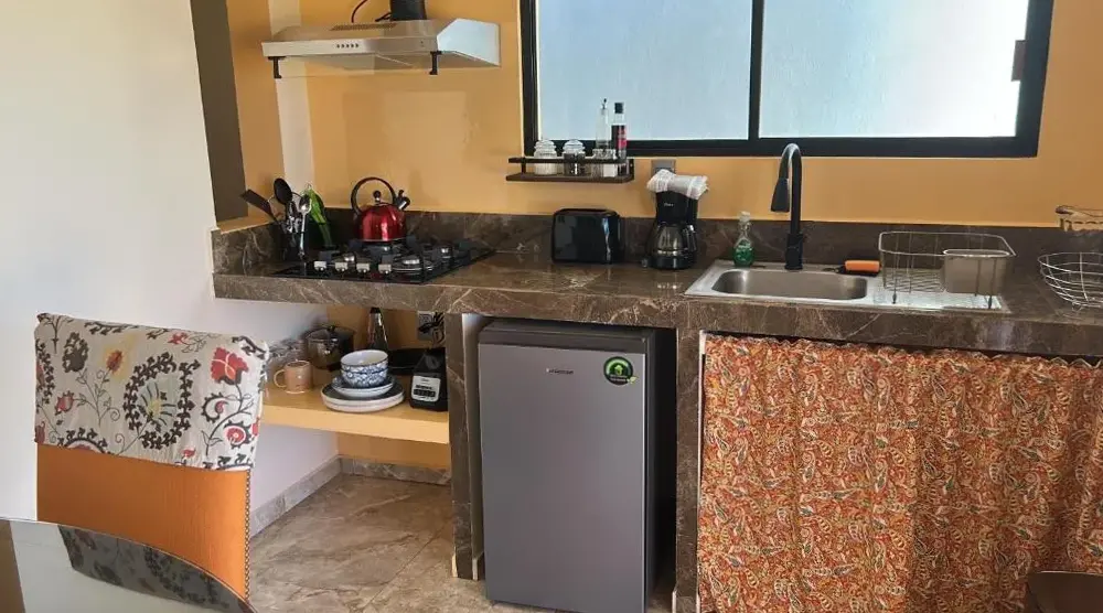 Tres Iguanas Apart Hotel se encuentra ubicado en Dionisia Villarino, 23880 Loreto, México. Ofrece alojamiento con opciones de estacionamiento gratuito y conexión a internet gratuita con velocidades de hasta 27 Mbps. Las habitaciones son no fumatorias y cuentan con instalaciones adaptadas para invitados con discapacidad. Los huéspedes pueden disfrutar de la tranquilidad del entorno cercano al Aeropuerto Internacional de Loreto, situado a 550 metros. Cerca del establecimiento encontrará lugares destacados como Zaragoza Beach a 300 metros, Dory Luz a 1.4 kilómetros y Restaurant Buena Vida a solo 1 kilómetro. Los comentarios de los clientes resaltan la excelente calidad de las instalaciones, la limpieza de las habitaciones y el buen trato del personal. Algunos visitantes mencionaron la comodidad de las áreas comunes y la posibilidad de acceder a habitaciones con cocina o terrazas privadas.